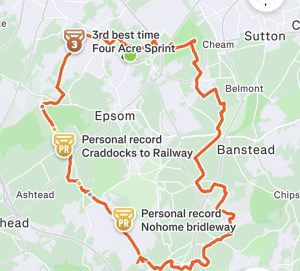 Lovely food at The Village Cafe, and a nice cosy local venue. Our return trip had us descending towards Langley Vale, heading for Ashtead Park before crossing the railway onto Ashtead Common. Bill elongated the journey back further by crossing into Horton Country Park and dropping down to the Hogsmill River for the final push.